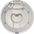 The Murano is the large round-tub in this line of spas, measuring 1.98m dia by .92m. This very attractive "hot tub" boasts 20 hydrotherapy jets and one 12-nozzle, high-flow foot massage jet. The jets are powered by a 2-speed pump
